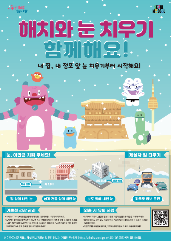 해치와 눈 치우기 함께해요!(내 집, 내 점포 앞 눈 치우기부터 시작해요!)