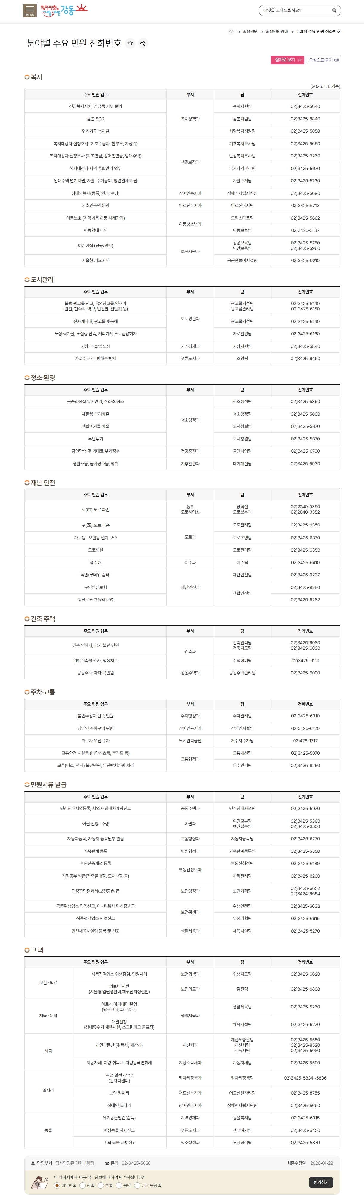 구정 분야별 주요 민원 전화번호 안내(2026. 1. 28. 현재 기준)