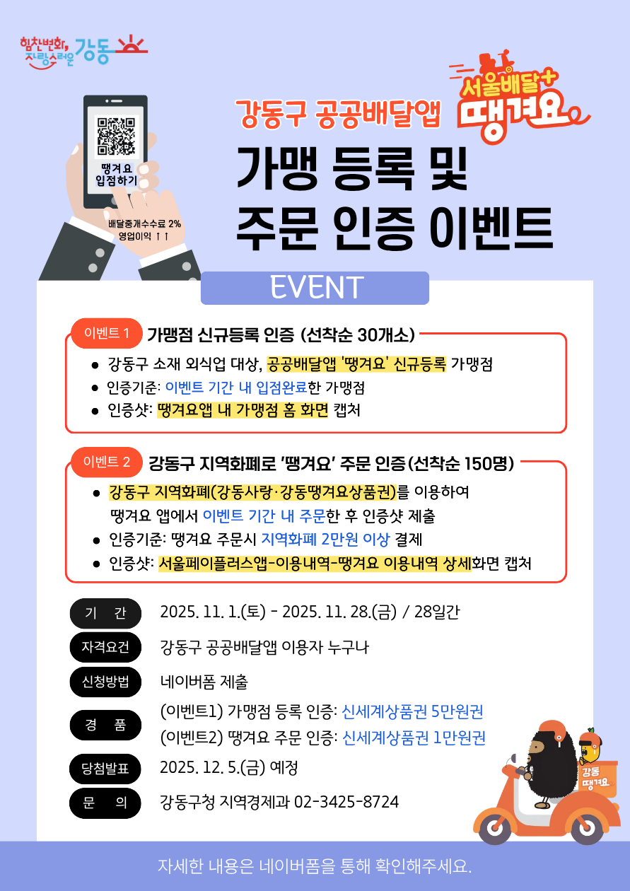 | 제목 | 서울배달플러스 땡겨요 이벤트 안내(11.1.(토) ~ 11.28.(금)) | ||