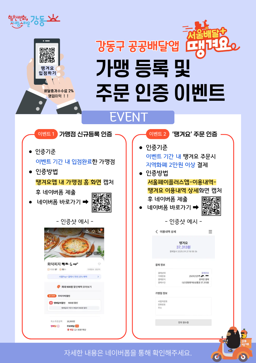 - 네이버폼 링크 - (이벤트 1) 가맹점 신규등록 인증 (이벤트 2) 땡겨요 주문 인증 |