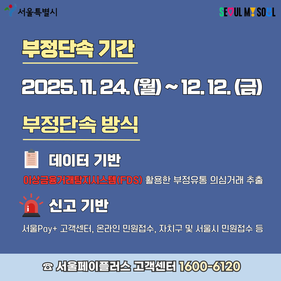 | 제목 | 2025년 하반기 서울사랑상품권 부정유통 일제단속 안내 [단속기간 2025.11.24.~12.12.] | ||
