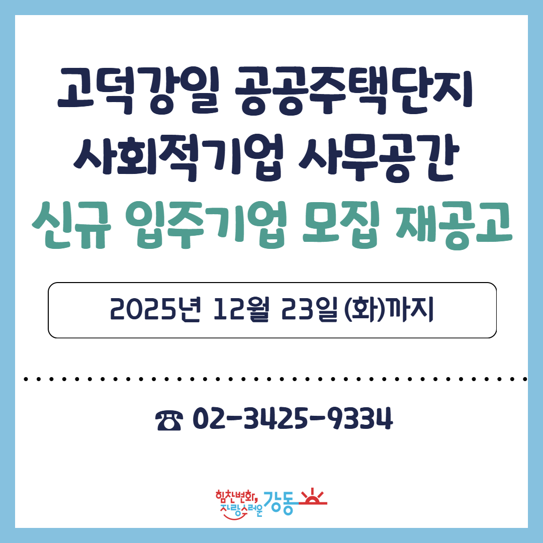 | 제목 | 고덕강일 공공주택단지 사회적기업 사무공간 신규 입주기업 모집 재공고 | ||