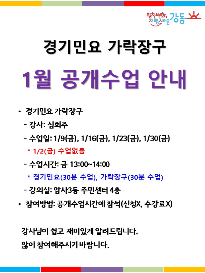 2026년 1월 경기민요 가락장구 공개수업 안내