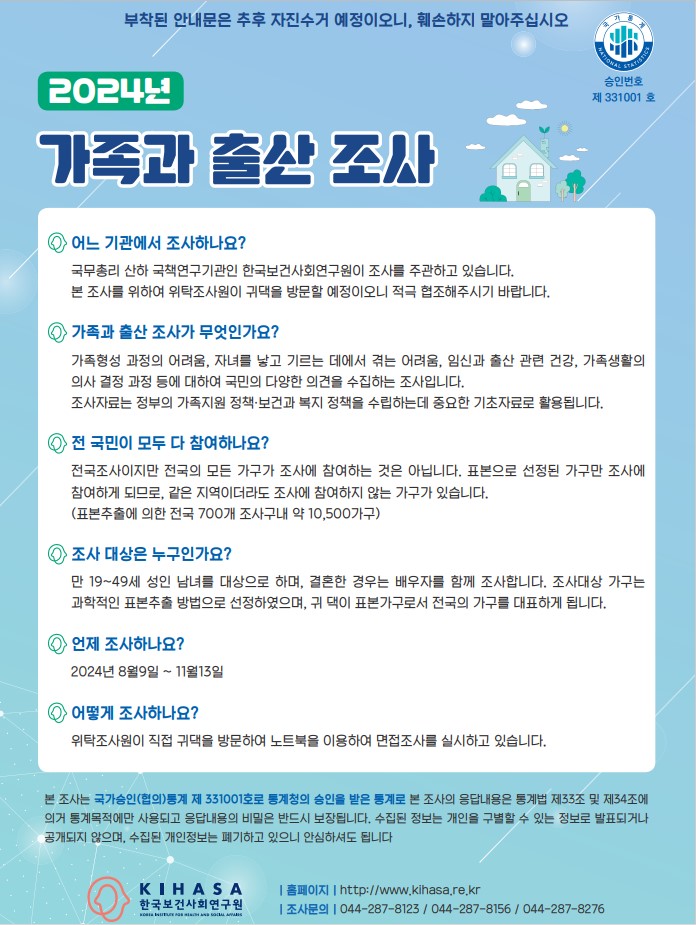 보건복지부 2024년도「가족과 출산 조사」 시행