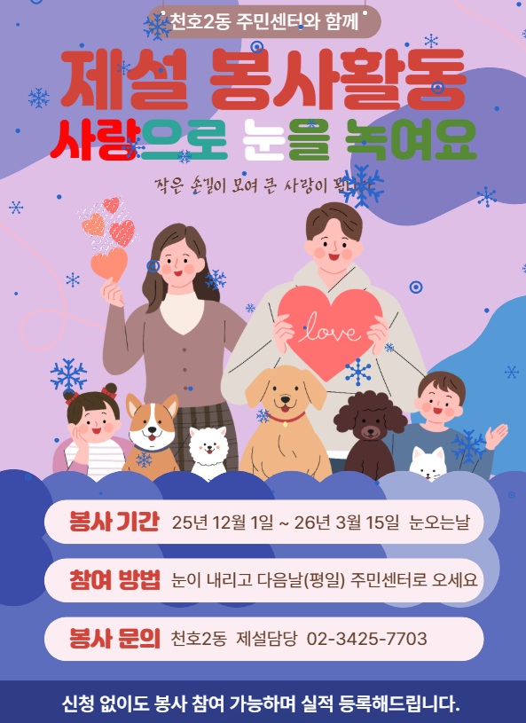 [천호2동] 제설 자원봉사자 모집!!!