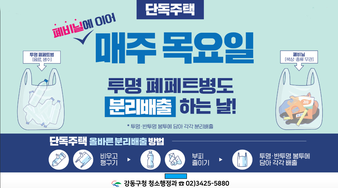- 내용물을 비우고 물로 헹군 후, 라벨 제거 및 압착한 다음,