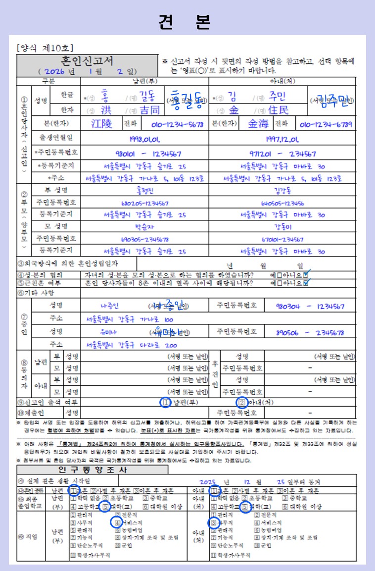 | 제목 | (작성 견본) 혼인신고서 | ||