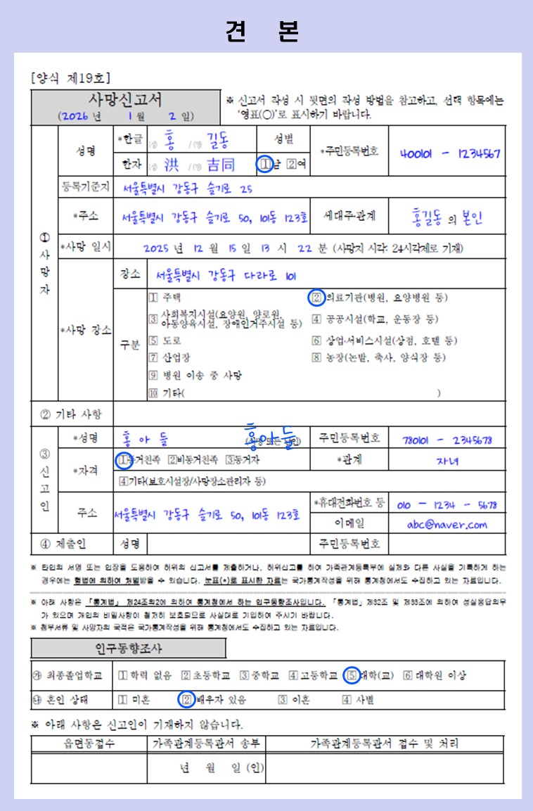 | 제목 | (작성 견본) 사망신고서 | ||