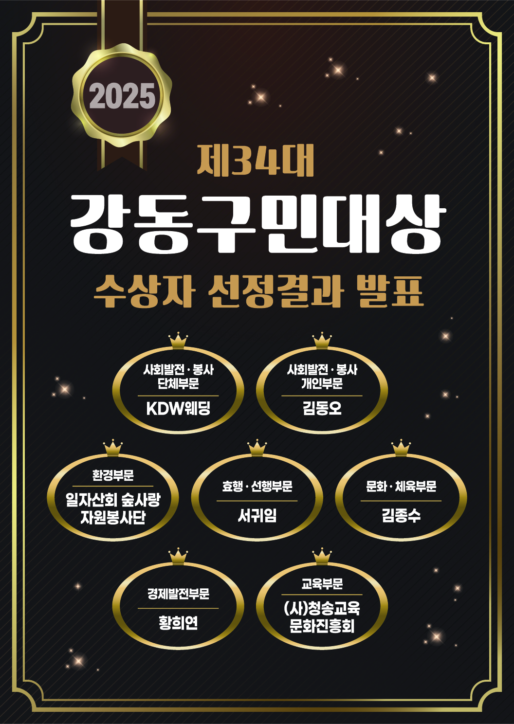 | 제목 | 제34대 강동구민대상 선정결과 알림 | ||